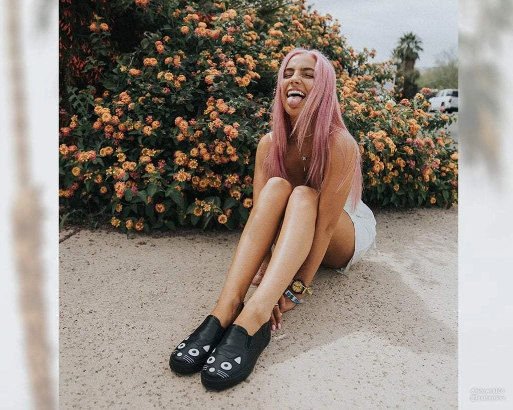 Follow your instincts and put your best foot fur-ward in these super cute slip-on sneakers. Features an all-black upper with a charming kitty face across the front and a tail at the heel for the purrfect finishing touch. Has a lightly padded tongue along with removable memory foam insoles for added comfort. Man-made materials and vegan friendly!