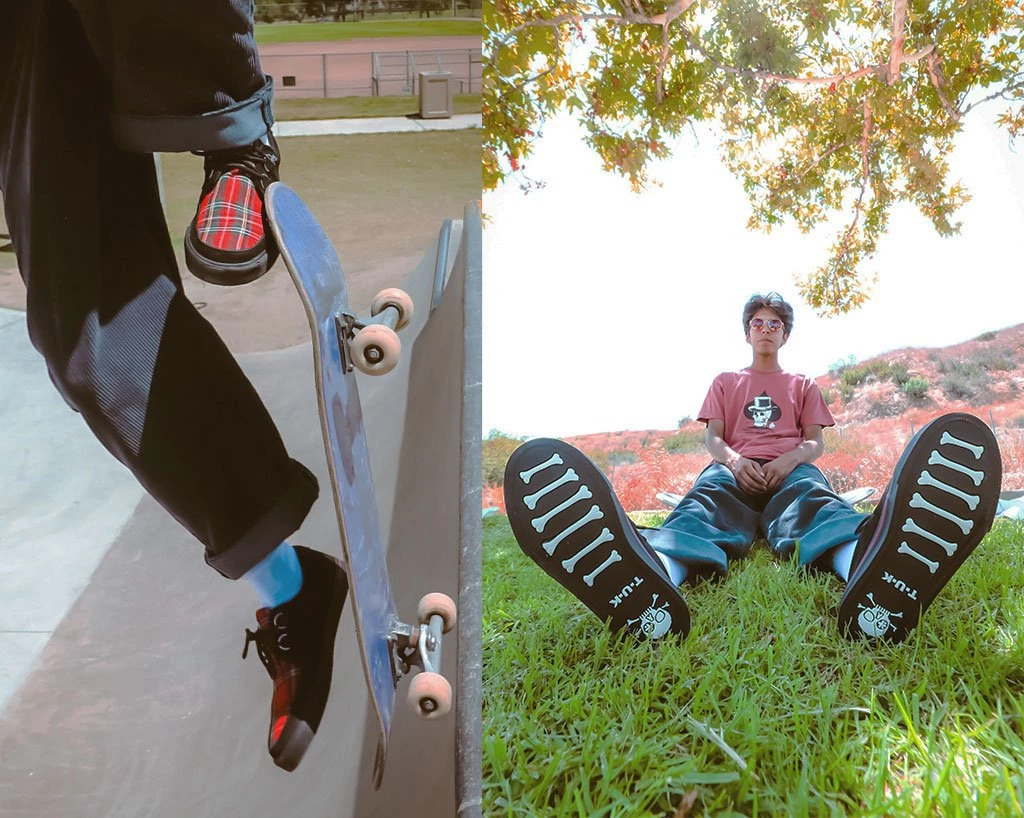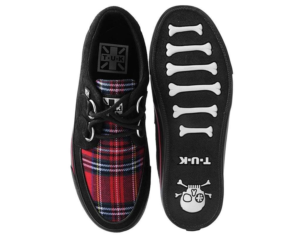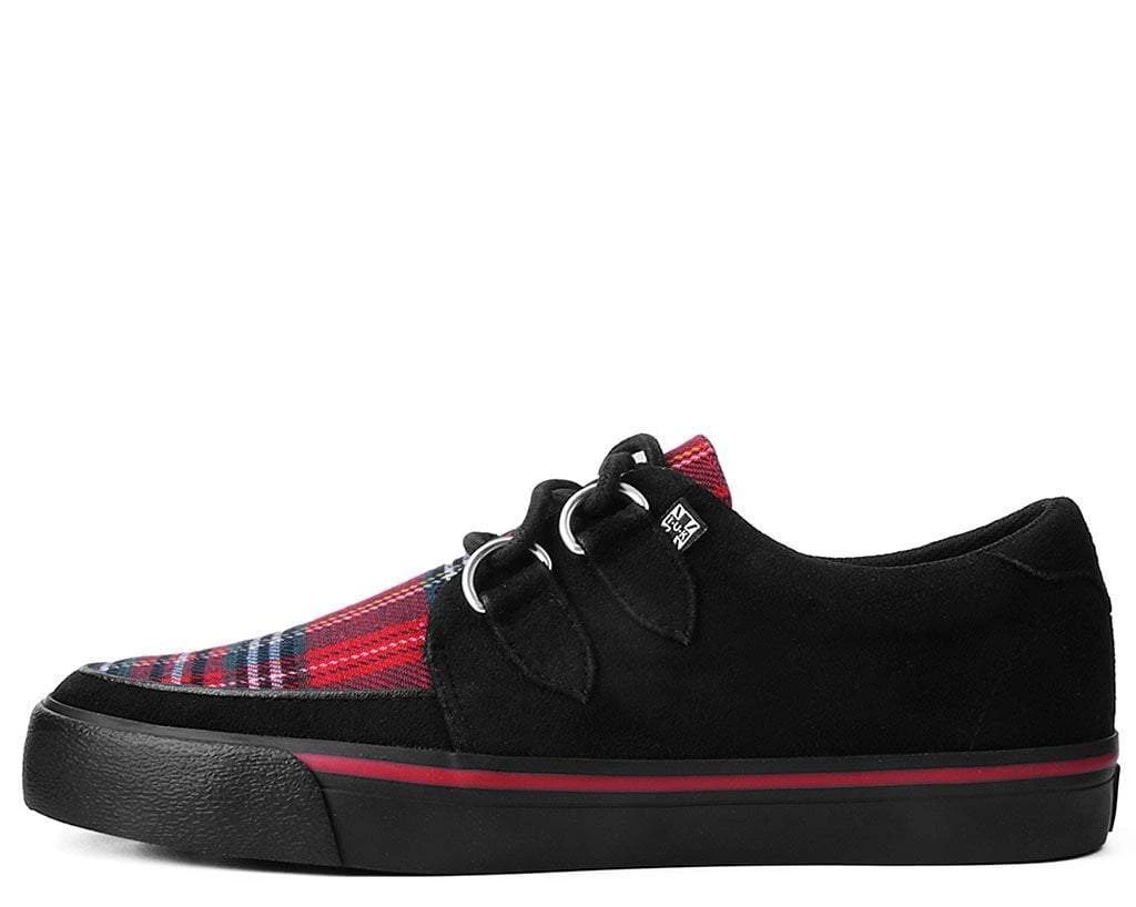Mad for plaid? Us too. Indulge your inner grunge kid with these kicks featuring a vegan friendly black microfiber upper contrasted by a rad, eye-catching red tartan plaid front. Features our vulcanized VLK creeper sneaker silhouette that lends everyday wearability. D-ring lace up closure and has a lightly padded tongue along with removable memory foam insoles for added comfort.