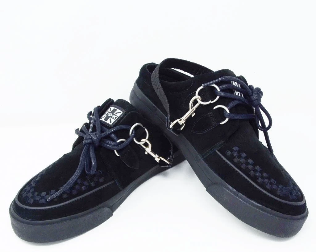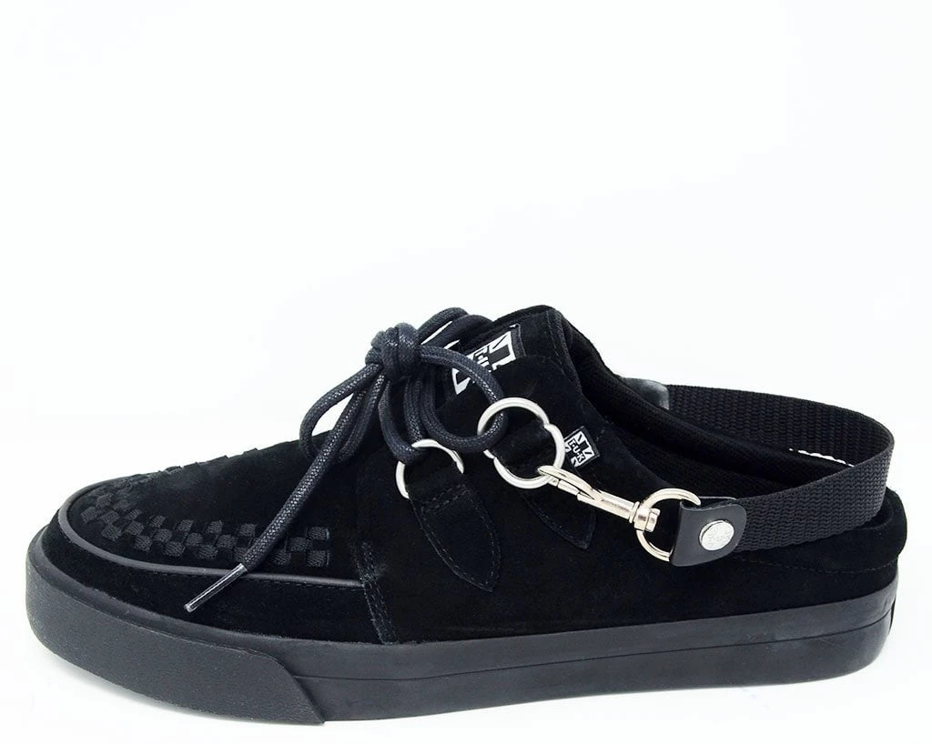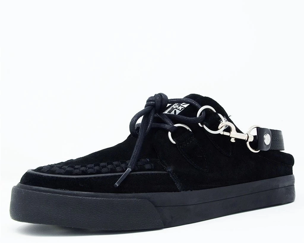 A go-to style. Slip ‘em on and you’re out the door. These sneakers are a mix of our iconic creeper sneakers with the convenience of easy on and off that a mule offers. Features a black cow suede upper with classic D-ring & iconic interlace detailing along the front. These sneakers bring you everyday wearability with a clean style. Includes a memory foam insole that makes each step better than the last.