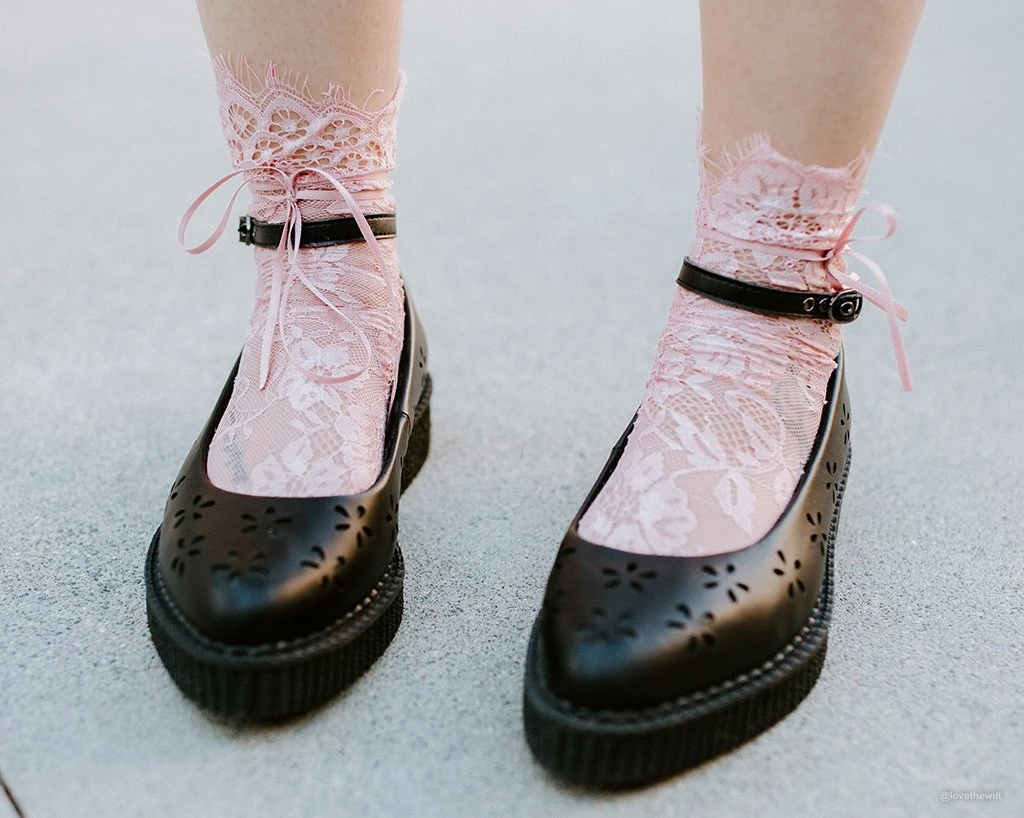 Dress up your footwear with these fun pink lace socks featuring a tie that wraps around the ankle & adds a simple feminine touch.