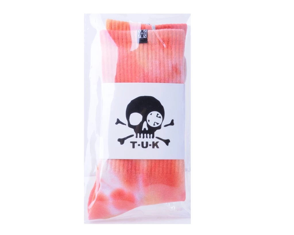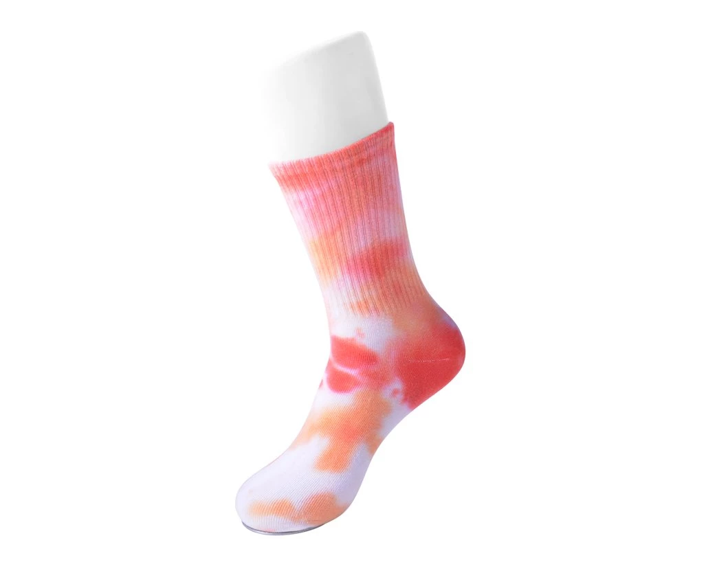Bringing old trends back, the perfect pair of tie-dye socks that features different shades of orange. Made with cotton, polyester and spandex for comfort and durability.