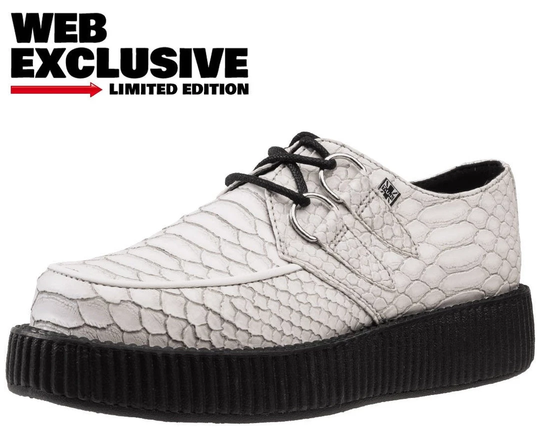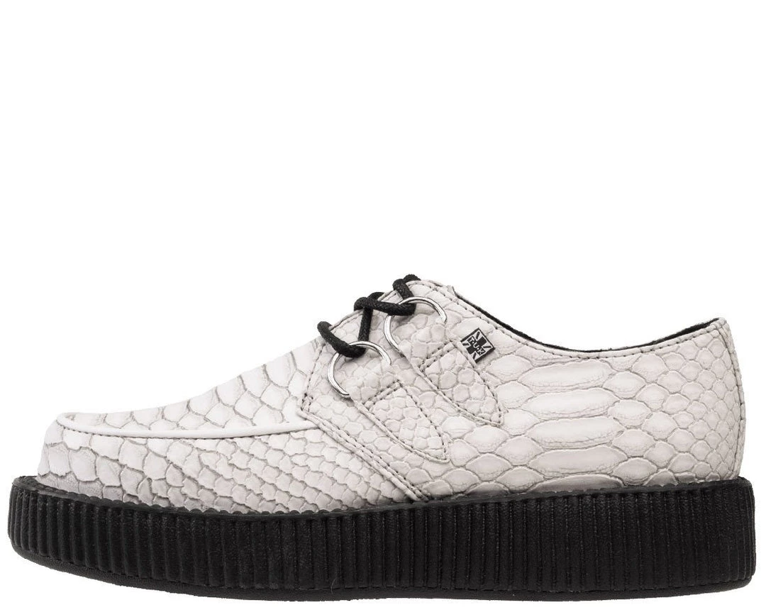 These creepers will have you slayin’ left and right like a badass! Features a white and grey embossed material with textured scales that is sure to catch double takes. Sits on top of our lightweight VIVA low sole that measures 1 ¼” at the heel and ¾” in the front. Made out of vegan friendly PU material so that no real dragons were harmed in the making of these shoes 😉